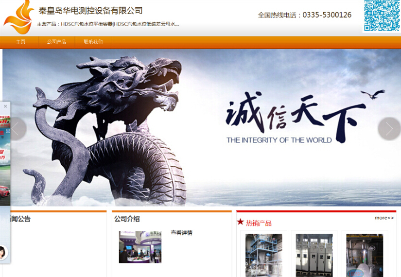 此網(wǎng)站的開(kāi)通,標(biāo)志著秦皇島華電測(cè)控設(shè)備有限公司的信譽(yù)得到了政府相關(guān)單位部門(mén)的充分認(rèn)可,公司的產(chǎn)品宣傳和發(fā)布進(jìn)一步得到了政府的支持與保護(hù),再次印證了公司的誠(chéng)信度,為客戶購(gòu)買(mǎi)產(chǎn)品提供了有力的可信保障。