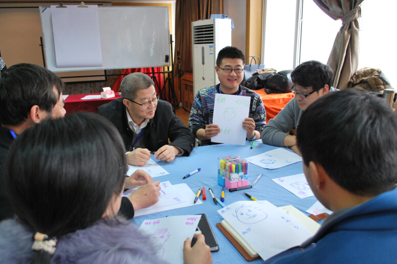 培訓(xùn)采用“世界咖啡”模式,每六人一組圍坐圓桌,每個人從一幅自畫像開始,表達(dá)出自己的心情和期待,接著,徐英教練引導(dǎo)大家回憶公司發(fā)展歷程,公司成立十六年來選取其中最重要的十件大事,以及在座每一位進(jìn)公司以來最重大的事,回顧往昔,從艱苦的創(chuàng)業(yè)期,到成長期,集團(tuán)化期,超越期,大家感慨萬千,往日的一幕幕情景涌上心頭,我們克服了一個又一個困難,取得了一個又一個成果,很多夢想變成了現(xiàn)實(shí),心中滿是喜悅,滿是感恩,回味無窮。大家拿起手中的畫筆,描畫出未來的華電測控宏偉藍(lán)圖。一幅幅色彩豐富、無限美好的圖畫掛到了墻上,大家的眼睛閃閃發(fā)亮,講述心中的美好遠(yuǎn)景,充滿了信心和希望。接下來,大家分組討論公司2015年急需解決的問題,最終選中三個題目“如何提高銷售額”,“如何提高員工積極性”以及“健康生活,快樂工作”,各團(tuán)隊(duì)士氣高漲,帶隊(duì)負(fù)責(zé)人上臺積極的宣講展示,精彩的講解博得大家陣陣歡笑和掌聲。