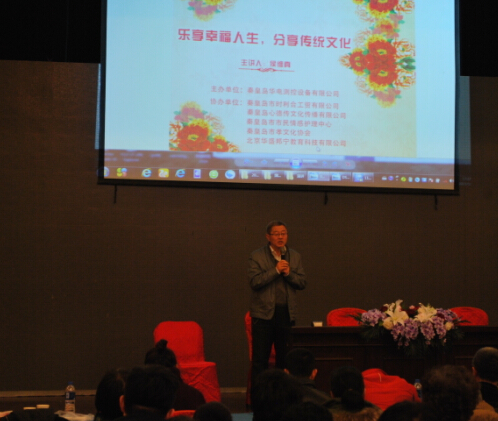 本次講座由河北省政協(xié)委員、秦皇島市工商聯(lián)副會長、秦皇島金維達(dá)機(jī)械有限公司董事長、“善人道”團(tuán)隊(duì)隊(duì)員――侯維真老師及其團(tuán)隊(duì)全程策劃,侯老師及其團(tuán)隊(duì)成員,為大家感情真摯、言辭懇切地分享了自己學(xué)習(xí)傳統(tǒng)文化的真知灼見,與會人員無不受益,會場掌聲此起彼伏、高潮迭起;動(dòng)情之處,會場許多人一起抽泣、哽咽,受益匪淺?;顒?dòng)中,大家還一起誦讀了中華傳統(tǒng)典籍《弟子規(guī)》,欣賞了習(xí)近平總書記作詞的歌曲《志成學(xué)子之歌》(習(xí)近平主席寄語),滿滿的正能量在會議大廳流淌。午休時(shí)間,孝文化協(xié)會還為大家獻(xiàn)上了文藝表演,以優(yōu)美的舞蹈、動(dòng)人的歌聲、激情的朗誦、幽默的三句半等等文藝方式演繹著中國傳統(tǒng)文化,內(nèi)容精彩、形式多樣,倍受觀眾喜愛,贏得了一次又一次熱烈的掌聲!