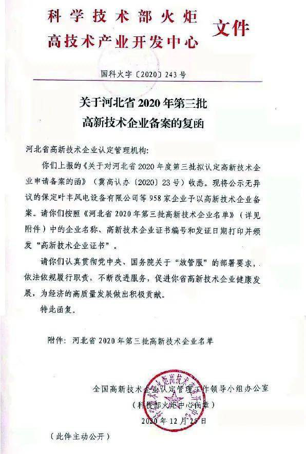 近日,秦皇島華電測(cè)控設(shè)備有限公司收到了全國(guó)高新技術(shù)企業(yè)認(rèn)定管理工作領(lǐng)導(dǎo)小組辦公室下發(fā)的《關(guān)于河北省2020年第三批高新技術(shù)企業(yè)備案的復(fù)函》(國(guó)科火字〔2020〕243號(hào)〕文件,公司第六次順利通過(guò)高新技術(shù)企業(yè)認(rèn)定。