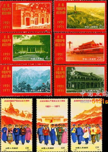 在1967年,我國郵電部發(fā)行了一套郵票,紀(jì)念毛主席創(chuàng)建井岡山革命根據(jù)地40周年。1967年6月,郵票設(shè)計(jì)人員開始郵票設(shè)計(jì)。8月上旬郵票圖稿設(shè)計(jì)完并報(bào)送中央有關(guān)部門審定之后,郵票圖稿經(jīng)郵票廠制版并打出樣票?!皠?chuàng)建井岡山革命根據(jù)地40周年”郵票編號(hào)為“文5”,郵票名稱為“紀(jì)念毛主席創(chuàng)建井岡山革命根據(jù)地四十周年”,發(fā)行日期為1967年10月1日,全套4枚,面值均為8分,影寫版。第一枚郵票圖案為毛主席和林彪在天安門城樓上。第二枚郵票圖案為毛澤東及其一行在井岡山會(huì)師。第三枚是毛主席語錄:“槍桿子里面出政權(quán)”。第四枚是毛主席詩詞:西江月?井岡山(一九二八年秋):“山下旌旗在望,山頭鼓角相聞。敵軍圍困萬千重,我自巋然不動(dòng)?!碑?dāng)打出樣票準(zhǔn)備付印時(shí),郵票廠接到上級(jí)有關(guān)部門的通知:“紀(jì)念毛主席創(chuàng)建井岡山革命根據(jù)地40周年”郵票,取消發(fā)行,郵票印樣全部銷毀,于是,這套紀(jì)念郵票被銷毀,在銷毀過程中流失了一部份,但數(shù)量極少,十分珍貴。據(jù)有關(guān)雜志報(bào)道,1981年美國一家郵商在日本東京舉行郵票拍賣時(shí),曾在目錄上刊出過這套郵票中的第一枚。1997年11月21日北京郵星貿(mào)易總公司在上海舉行的拍賣會(huì),1枚紀(jì)念毛主席創(chuàng)建井岡山革命根據(jù)地40周年郵票,上品,底價(jià)150萬元(人民幣),未拍出。