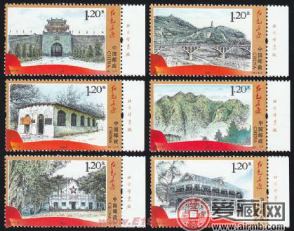 為迎接2012年中國共產(chǎn)黨第十八次全國人民代表大會(huì)的召開,配合紅色旅游,中國郵政集團(tuán)公司于2012年6月30日發(fā)行了《紅色足跡》特種郵票一套。2012年6月30日,“紅色足跡”特種郵票首發(fā)式在井岡山舉行。2012-14《紅色足跡》特種郵票?小版張一共有六枚郵票組成,分別是井岡山、瑞金、遵義、會(huì)寧、延安、西柏坡六處老革命根據(jù)地的圖案,面值全部是1.20元,設(shè)計(jì)者是巧妙的運(yùn)用了這種鋼筆淡彩的手法,將每一處根據(jù)地完美的展現(xiàn),并且還是小版張郵票,無論是從設(shè)計(jì)、題材、形式方面來看,這都是一套極有價(jià)值的郵票,所以收藏者一直對(duì)它的熱度沒有減少。