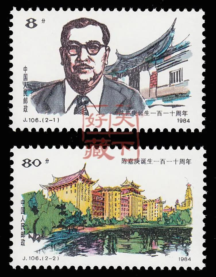 1984年10月21日,我國郵電部為了表達(dá)中國人民對(duì)著名愛國僑領(lǐng)的深深懷念,發(fā)行了一套陳嘉庚誕辰110周年紀(jì)念郵票。此套郵票共2枚,由我國著名郵票設(shè)計(jì)家黃里設(shè)計(jì)。