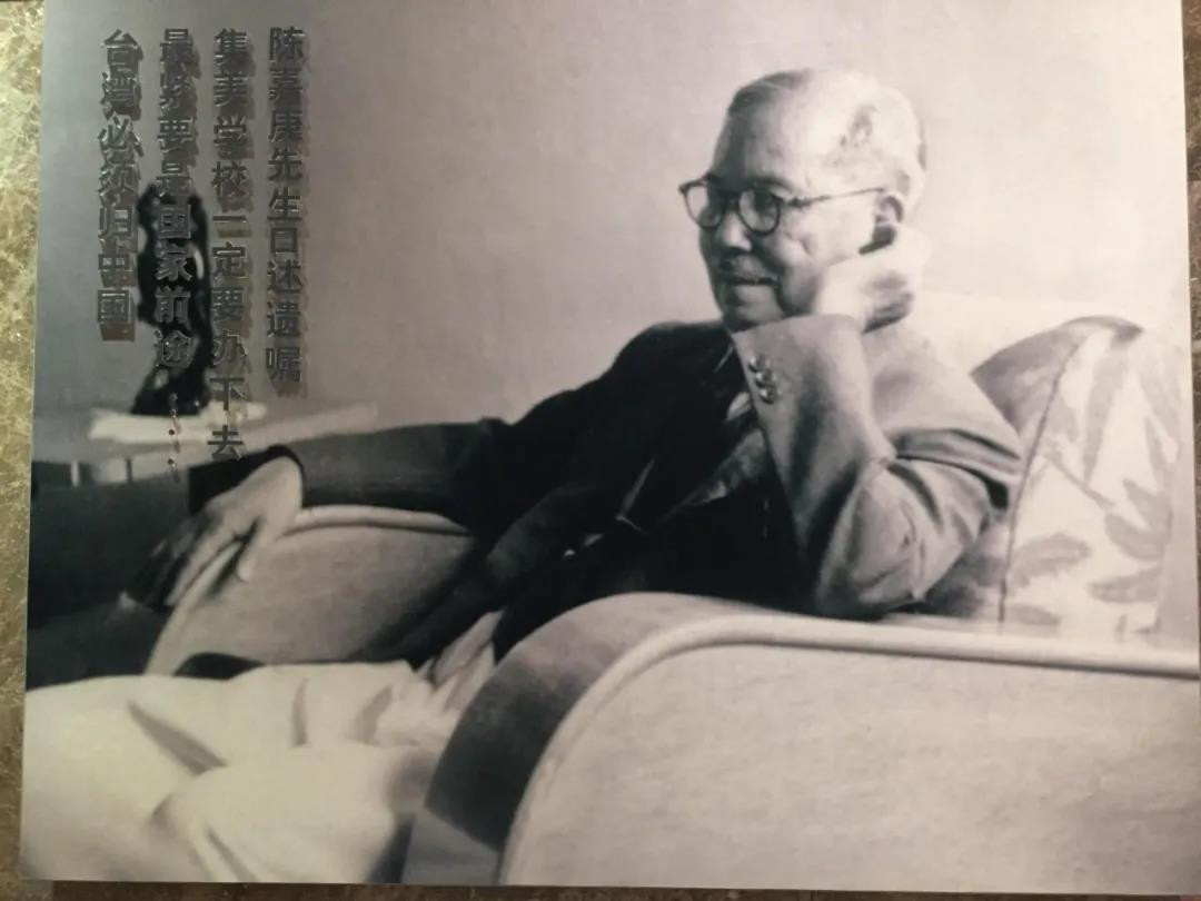 1984年2月9日,在廈門經(jīng)濟(jì)特區(qū)視察的鄧小平來到廈門大學(xué)和集美學(xué)村,并參觀了集美陳嘉庚紀(jì)念館,深為感佩。回北京后,他便揮毫為即將出版的《陳嘉庚畫冊(cè)》題詞:"華僑旗幟民族光輝陳嘉庚"。這是他將毛澤東為陳嘉庚書寫的一件條幅:"華僑旗幟民族光輝"借用過來的。這件條幅,毛澤東曾在1945年11月抗戰(zhàn)勝利后,在重慶時(shí)送給陳嘉庚的題書。