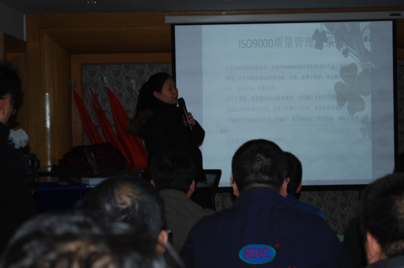 為了使全體員工熟練掌握工作程序并不斷完善、優(yōu)化ISO9001:2008質(zhì)量管理體系流程,進(jìn)一步把質(zhì)量管理體系建設(shè)工作向縱深推進(jìn),提高質(zhì)量管理能力,讓公司每名員工都學(xué)習(xí)、理解ISO9000質(zhì)量管理體系流程和標(biāo)準(zhǔn),使基礎(chǔ)管理工作更加標(biāo)準(zhǔn)化、規(guī)范化。3月11日,在公司管理部的組織下于會(huì)議室進(jìn)行了ISO9000質(zhì)量管理體系――工程部工作流程的培訓(xùn),由工程部?jī)?nèi)審員劉曉娜進(jìn)行授課。工程部全體人員,生產(chǎn)部、國(guó)貿(mào)部、管理部、市場(chǎng)部和客服部等部門人員等共34人參加了本次培訓(xùn)。