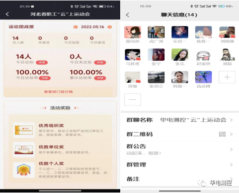 此次運動會是由河北省總工會牽頭主辦的“中國夢·勞動美—喜迎二十大·建功新時代”職工“云”上運動會,市級、區(qū)級總工會逐級組織基層單位工會共同參與。“云”上運動會,充分利用網(wǎng)絡(luò)技術(shù)和“云”上手段,多渠道普及推廣科學(xué)健身知識,開展大眾普適性健身項目,結(jié)合常態(tài)化疫情防控工作實際,讓職工“云”健身成為生活常態(tài)。自活動開展以來,華電測控職工每天達標率100%,大家每天任意選擇6項運動(AI跳繩100次、AI運動場完成4項、健步走6000步以上、騎行6公里以上、健身20分鐘、跑步3公里以上)中的1—2項,完成即為達標。