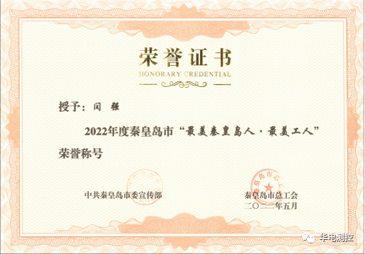 2022年5月,由市委宣傳部、市總工會等部門組成評審委員會,嚴格按照綜合評審、公示等相關(guān)程序,秦皇島市“最美秦皇島?最美工人”評選結(jié)果揭曉,秦皇島華電測控設(shè)備有限公司高壓焊工閆強同志榮獲2022年度秦皇島市“最美秦皇島人?最美工人”榮譽稱號。獲此殊榮,華電測控全體員工向閆強同志表示祝賀!