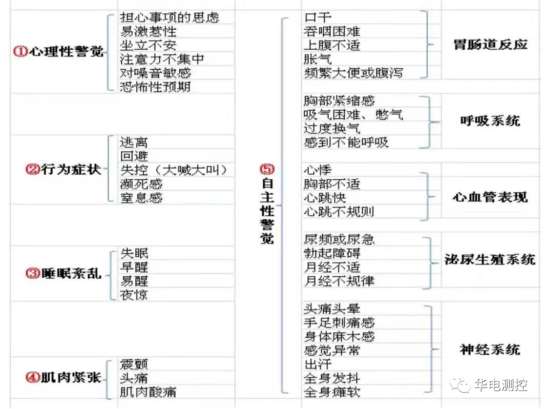 焦慮癥是指沒有客觀原因的,無明確目標(biāo)的,不由自主的緊張、焦慮、煩躁、坐臥不寧、心神不安、出汗、尿頻、心慌、胸悶、心悸等,分為慢性焦慮和急性焦慮。需要認(rèn)識慢性焦慮癥。焦慮情緒“事出有因”,焦慮癥則是無名焦慮。分為慢性和急性。慢性患者想象中的威脅、危險、壞結(jié)果,其實(shí)并不存在,也不可能發(fā)生,卻提心吊膽,惶惶不安。伴有自主神經(jīng)功能紊亂癥狀:口干、出汗、心悸、氣促、尿頻、震顫、坐立不安。伴有入睡困難、多夢、夜驚、夢魘(俗稱“鬼壓身”)等睡眠障礙。需要認(rèn)識急性焦慮癥。急性焦慮癥患者的無名焦慮會突然上升到無名驚恐,發(fā)作時間幾分鐘到幾十分鐘,表現(xiàn)出神經(jīng)紊亂癥狀:感到呼吸困難、咽喉阻塞、即將窒息而死;或感到胸腔壓迫、強(qiáng)烈心悸、心臟像要從口腔里跳出來;或感到頭疼、頭暈,表現(xiàn)出多汗、面色蒼白或潮紅、手足震顫、步態(tài)不穩(wěn)。發(fā)作后虛弱無力,幾天才能恢復(fù)。焦慮癥通常分為:廣泛性焦慮障礙、恐懼癥、社交焦慮癥、廣場恐懼癥、特殊恐懼癥、驚恐障礙。