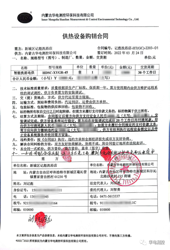2022年3月24日,內(nèi)蒙古華電測(cè)控環(huán)??萍加邢薰九c呼和浩特市某洗浴店成功簽約智能洗浴電供熱系統(tǒng)項(xiàng)目,這是繼上一次某洗浴中心供熱項(xiàng)目安裝完成后的又一喜訊!本次合同的簽訂,將進(jìn)一步凸顯公司自動(dòng)化控制的優(yōu)勢(shì),為內(nèi)蒙古公司在國內(nèi)市場(chǎng)加快推廣和開展多元化業(yè)務(wù)帶來了積極作用。