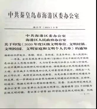 2021年,中共秦皇島市海港區(qū)委、區(qū)政府組織申報(bào)年度文明單位和文明個(gè)人等,經(jīng)過(guò)推薦、申報(bào)、評(píng)審,近期獲悉秦皇島華電測(cè)控設(shè)備有限公司連續(xù)兩年榮獲海港區(qū)文明單位稱號(hào),公司黨支部書(shū)記、副總經(jīng)理劉喆林同志被評(píng)為海港區(qū)文明職工。