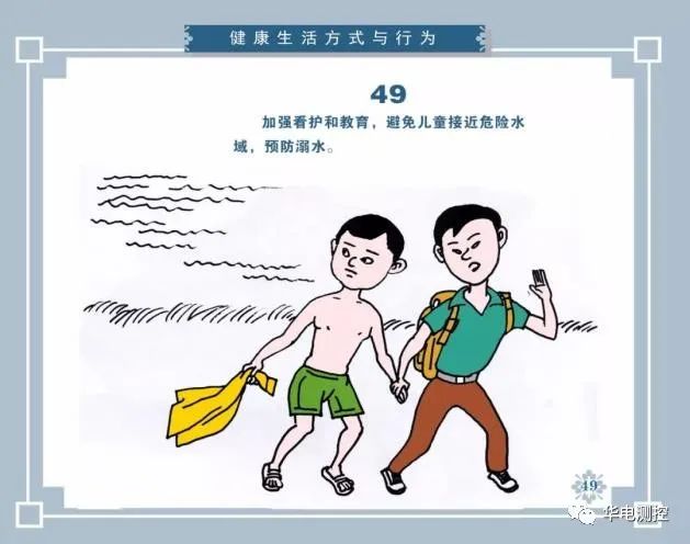 提高健康素養(yǎng),應(yīng)當(dāng)從兒童抓起。重點(diǎn)要加強(qiáng)學(xué)校、家庭和社會(huì)對(duì)兒童生命教育的同時(shí),教育家長要加強(qiáng)對(duì)孩子看護(hù),預(yù)防兒童溺水?!吨袊窠】邓仞B(yǎng)—基本知識(shí)與技能》第二部分,關(guān)于“健康生活方式與行為”,其中第四十九條明確強(qiáng)調(diào):“加強(qiáng)看護(hù)和教育,避免兒童接近危險(xiǎn)水域,預(yù)防溺水。”