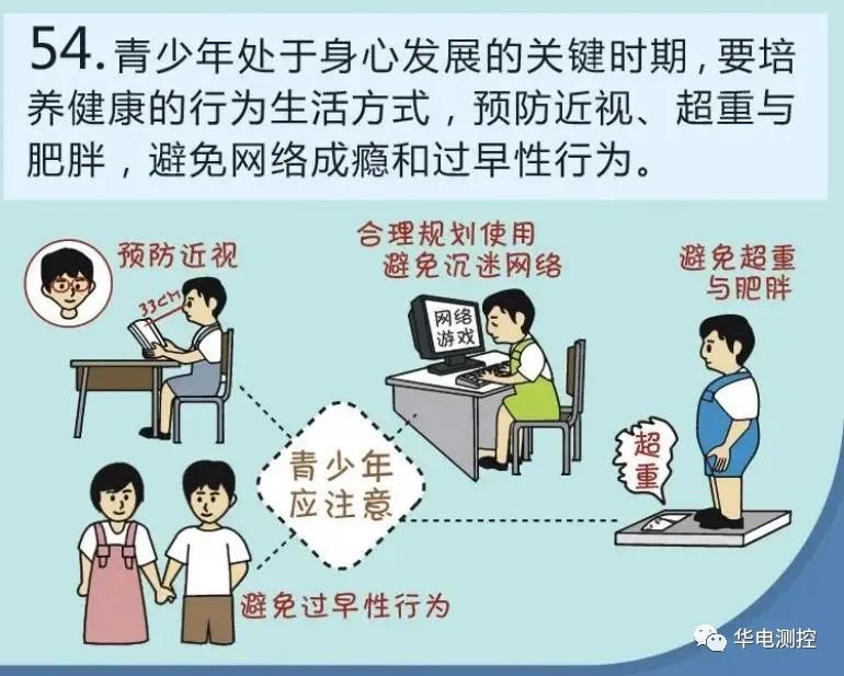 青少年是祖國的未來,提高他們的健康素養(yǎng),是實現(xiàn)健康中國戰(zhàn)略目標的關鍵?!吨袊窠】邓仞B(yǎng)—基本知識與技能》第二部分,關于“健康生活方式與行為”,其中第五十四條強調:“青少年處于身心發(fā)展的關鍵時期,要培養(yǎng)健康的行為生活方式,預防近視、超重與肥胖,避免網(wǎng)絡成癮和過早性行為。”