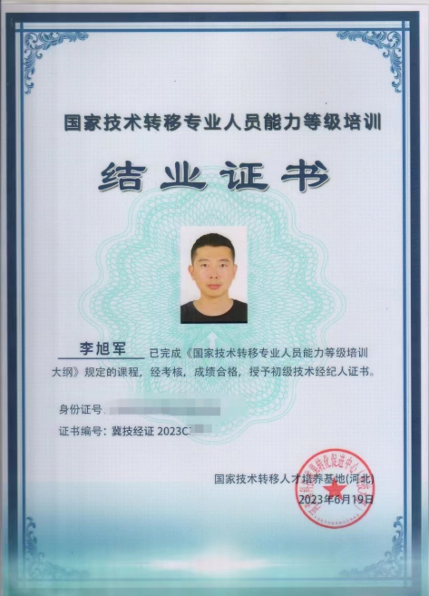 近日,華電測控集團(tuán)常務(wù)副總經(jīng)理劉喆林、經(jīng)營管理部經(jīng)理李旭軍喜獲由國家技術(shù)轉(zhuǎn)移人才培養(yǎng)基地(河北)頒發(fā)的“國家技術(shù)轉(zhuǎn)移專業(yè)人員能力等級培訓(xùn)”結(jié)業(yè)證書。本次證書的的頒發(fā),是對科技人才培養(yǎng)、科技成果轉(zhuǎn)化及企業(yè)服務(wù)工作的高度重視和大力宣揚(yáng)。