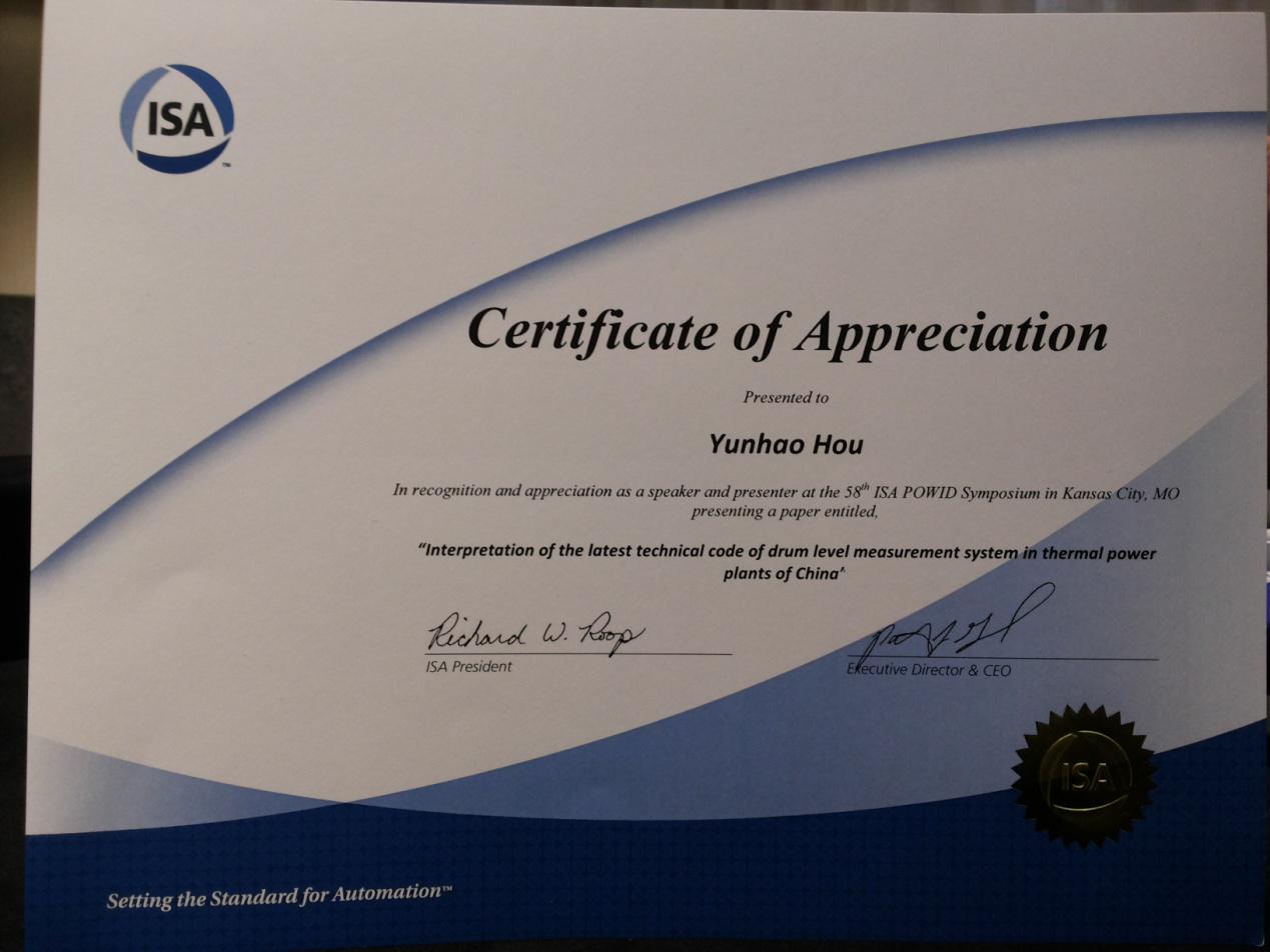 這次是我公司第三次受邀參會(huì),國(guó)貿(mào)部副經(jīng)理、高級(jí)工程師于勝利和副總工程師崔明思代表公司參會(huì)。新的汽包水位測(cè)量技術(shù)行業(yè)標(biāo)準(zhǔn)得到了與會(huì)專家的高度重視和認(rèn)可,公司在汽包水位測(cè)量技術(shù)領(lǐng)域取得的成就得到了美國(guó)標(biāo)準(zhǔn)管理局ISA和電力行業(yè)專家的肯定和贊譽(yù)。華電測(cè)控對(duì)世界電力行業(yè)做出了突出的貢獻(xiàn),在標(biāo)準(zhǔn)層面引領(lǐng)世界電力行業(yè)向更安全,更可靠發(fā)展。