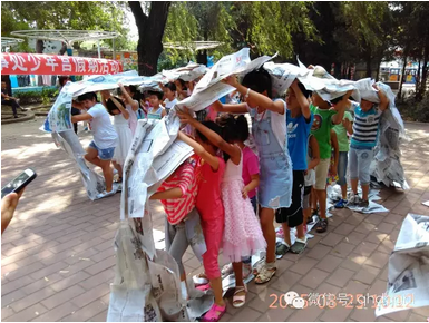 活動在最后一個游戲無敵風(fēng)火輪中結(jié)束,這是一個團結(jié)合作的游戲,小朋友分成三組,每組小朋友一起合作,用報紙粘成一個圓圈,使每個小朋友都能在圓圈底下,大家一起頂著圓圈進行比賽,最快完成并達到終點者獲勝,這是一個團結(jié)協(xié)作的過程,每個小朋友都要在隊伍中明確自己的位置與責(zé)任,做好自己工作的同時也要保證其他小朋友的任務(wù)有序順利的進行。