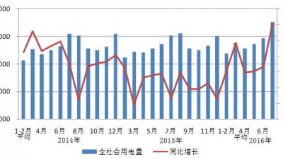 中電聯(lián)發(fā)布2016年1-7月份電力工業(yè)運行簡況” 2016-08-241-7月份,全國電力供需總體寬松。受氣溫偏高和上年同期基數(shù)偏低等因素影響,全社會用電量增速同比提高;工業(yè)用電量增速同比提高,制造業(yè)累計用電增速由負轉(zhuǎn)正;鋼鐵和有色金屬冶煉行業(yè)用電量持續(xù)負增長,拖累高載能行業(yè)用電量增More